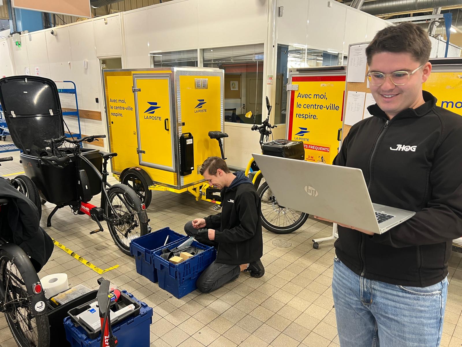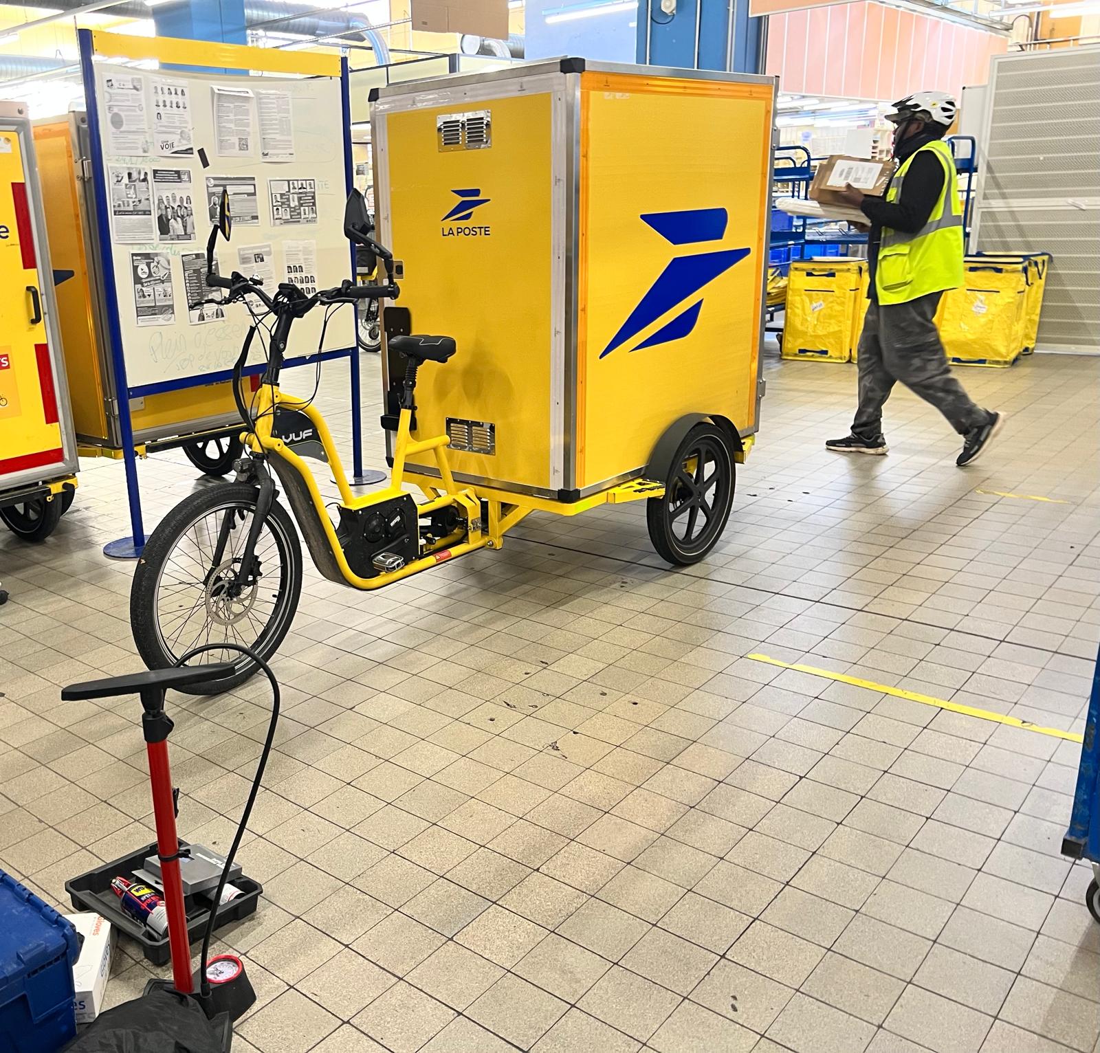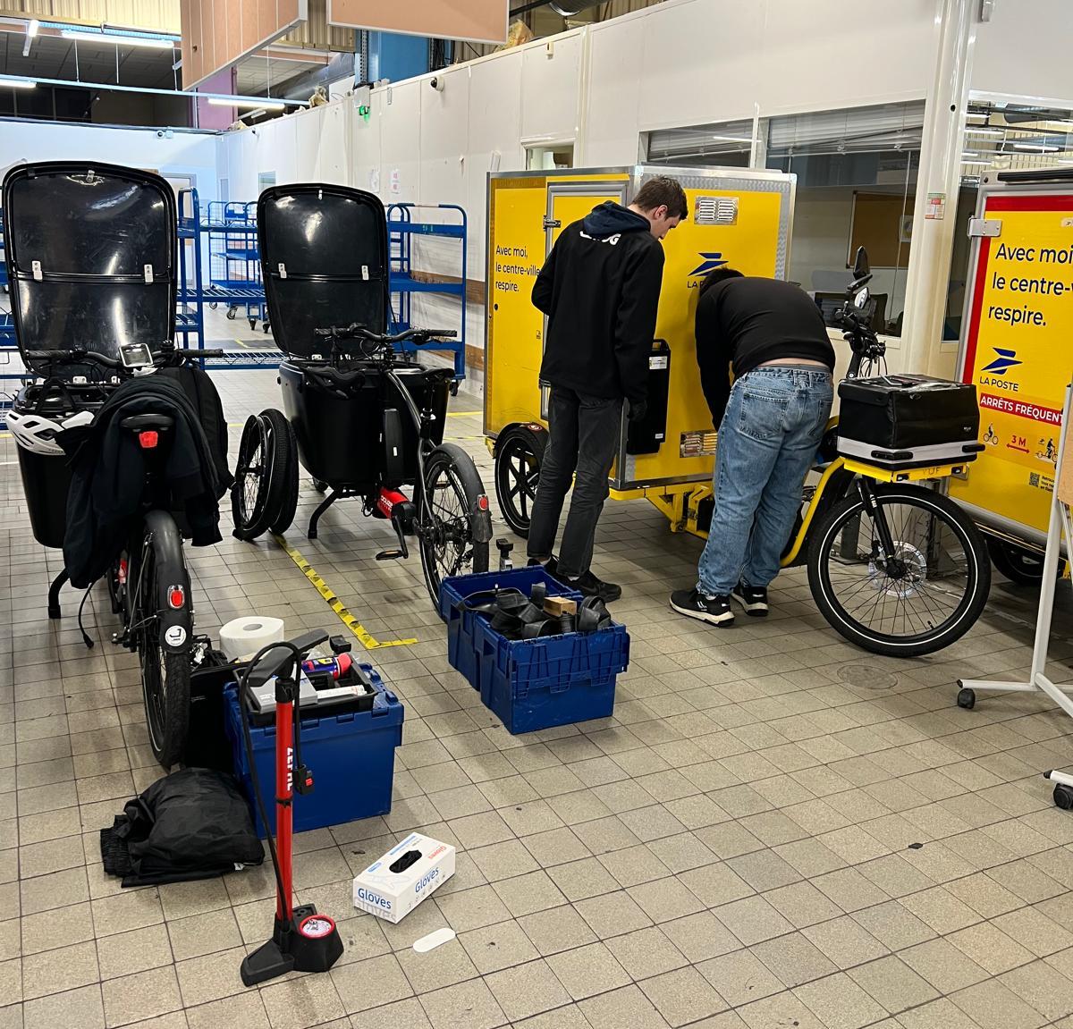 Ici, intervention sur du matériel VUF Bikes au sein de la plate-forme La Poste Groupe à deux pas de la place Bellecour, en plein cœur de Ville de Lyon.